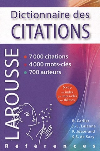 Dictionnaire des Citations françaises - 7 000 citations - 700 auteurs - 4000 mots clés - Robert Carlier, Jean-Louis Lalanne, Pierre Josserand, Samuel-S de Sacy - Langues, français, dictionnaire